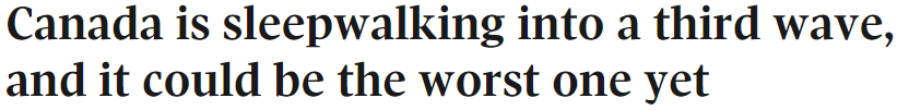加拿大一名在重症监护病房里救治新冠病人的医生更是绝望表示,加拿大正“梦游般”地走向第三波“迄今为止最严重”的疫情。
