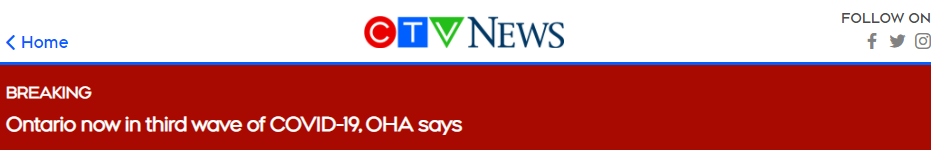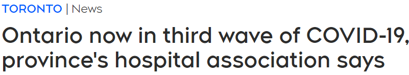 加拿大安省医院学会宣布,安省已经进入第三波新冠疫情!