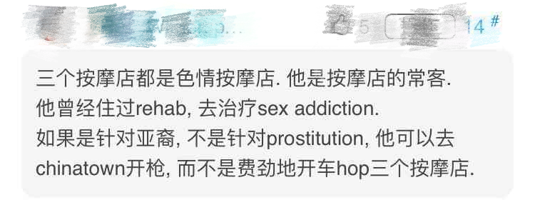 虽然在论坛上,同情受害者,谴责枪手的网友不在少数,但仍然有的声音特别刺耳:按摩店都是色情按摩店。