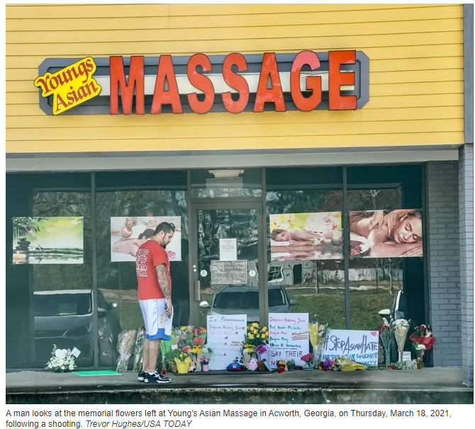 以上四人均在杨氏亚洲按摩馆(Young's Asian Massage)内中枪身亡,杨氏亚裔按摩店正是21岁白人枪手Robert Aaron Long血洗的第一家按摩店。