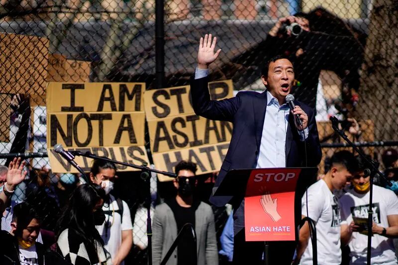 民主党市长候选人Andrew Yang周日在哥伦布公园发表讲话,表示如果当选,会把更多资金投入城市的亚裔仇恨犯罪专责小组。“看到针对我们社区的种族主义和黑暗的东西,而且是病毒性的,越来越危险,如果针对社区的犯罪率上升900%,这不是一个可以让志愿者解决的问题”。 (图片来源网络,版权属于原作者)