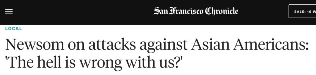加州州长纽森发言支持亚裔 再被询问到近期湾区和全美各地针对亚裔美国人的袭击事件时,州长纽森气愤质问,“我们到底怎么了?”,“我们在2021年的今天,还在进行1881年,也就是《排华法案(指1882年禁止中国劳工移民美国的法律)》出台前一年的对话......这种想法令人痛苦,同时也令人气愤。我们到底怎么了?它让人心碎......它让我们所有人都感到愤怒,人们不得不因为他们的种族、族裔、所说的语言、年龄或性别而生活在恐惧中”。