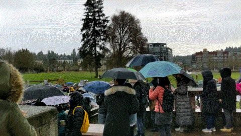 然而一场大雨的到来,并没有击溃大家的热情。一波波的人群从各个停车场涌入场地,现场除了亚裔之外,也能看到其他族裔都到场支持。