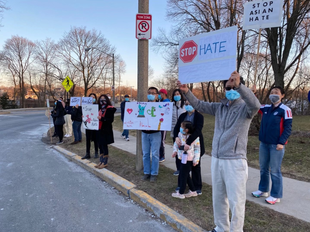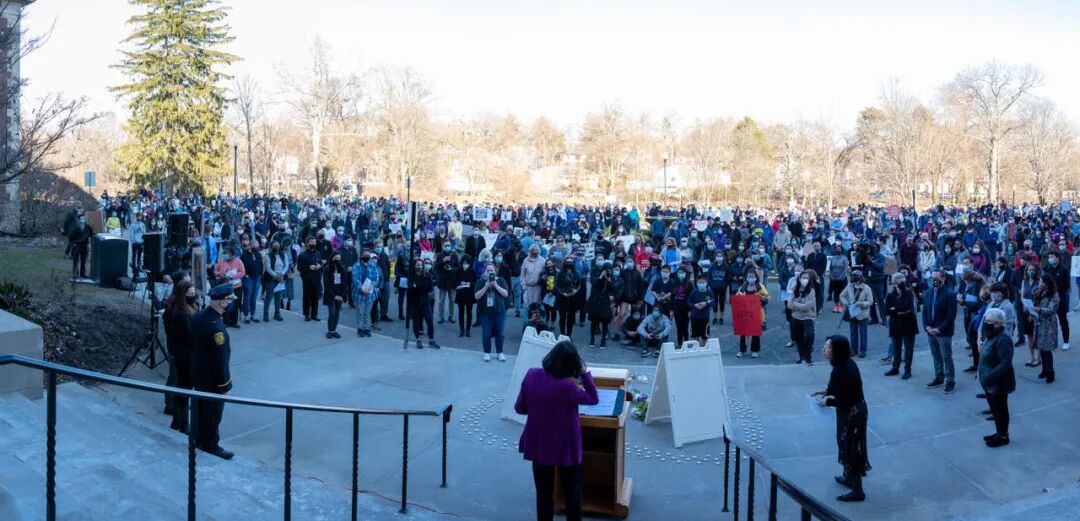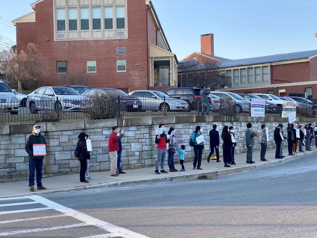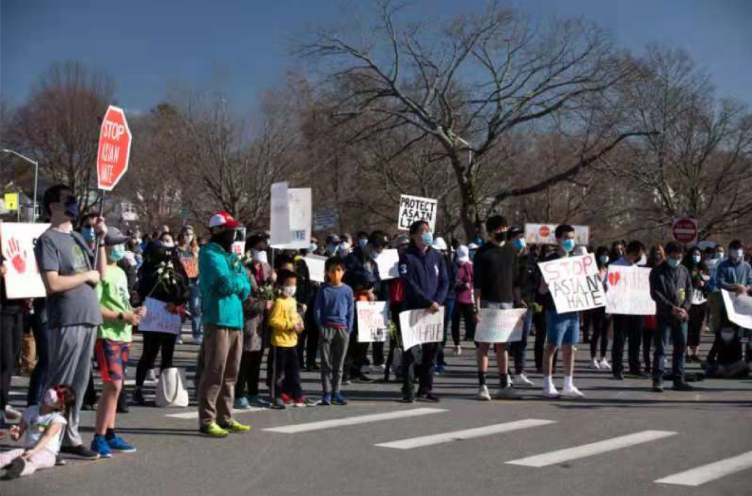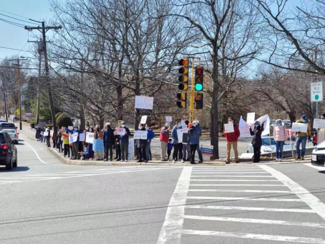 3月21日,麻州各地纷纷举行游行集会,反歧视亚裔,Andover、Needham、Wellsley、Acton、Sharon、Lexington、Hopkinton、Southborough、Newton、Belmont等城镇相继展开了声势浩大的抗疫活动。
