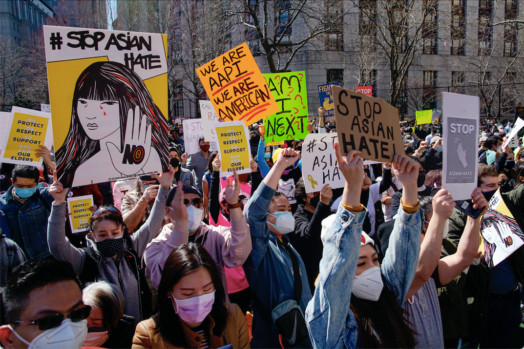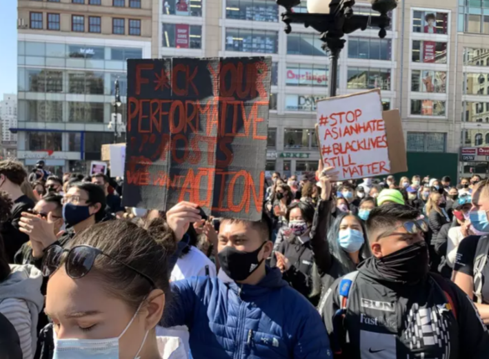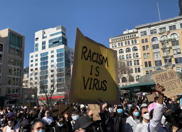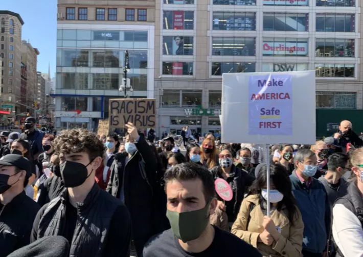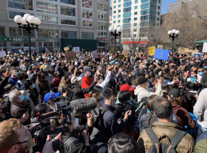 3月21日上午10点数千纽约人21日在曼哈顿联合广场(Union Square)集会,反对针对亚裔的仇恨犯罪,号召亚裔和非洲裔联合起来,共抗种族歧视;参与集会的大部分为亚裔民众,集会者高喊「反对亚裔仇恨」口号,表示少数族裔只有联合起来,才能改善面临歧视的环境。