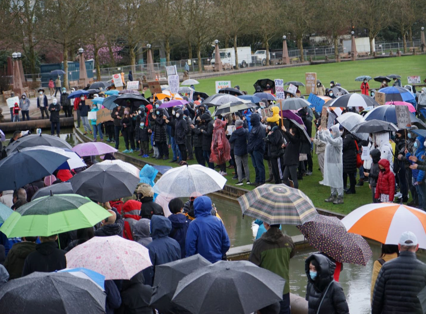 2021年3月21日,早上11点,在俄勒冈州华人联盟(OCC)的领头下,数以千计华人参与和平“街头举牌抗议”活动,活动范围分布整个俄勒冈州,包括波特兰、西林首府、科瓦利斯、尤金等17个地点的活动地点。