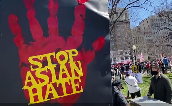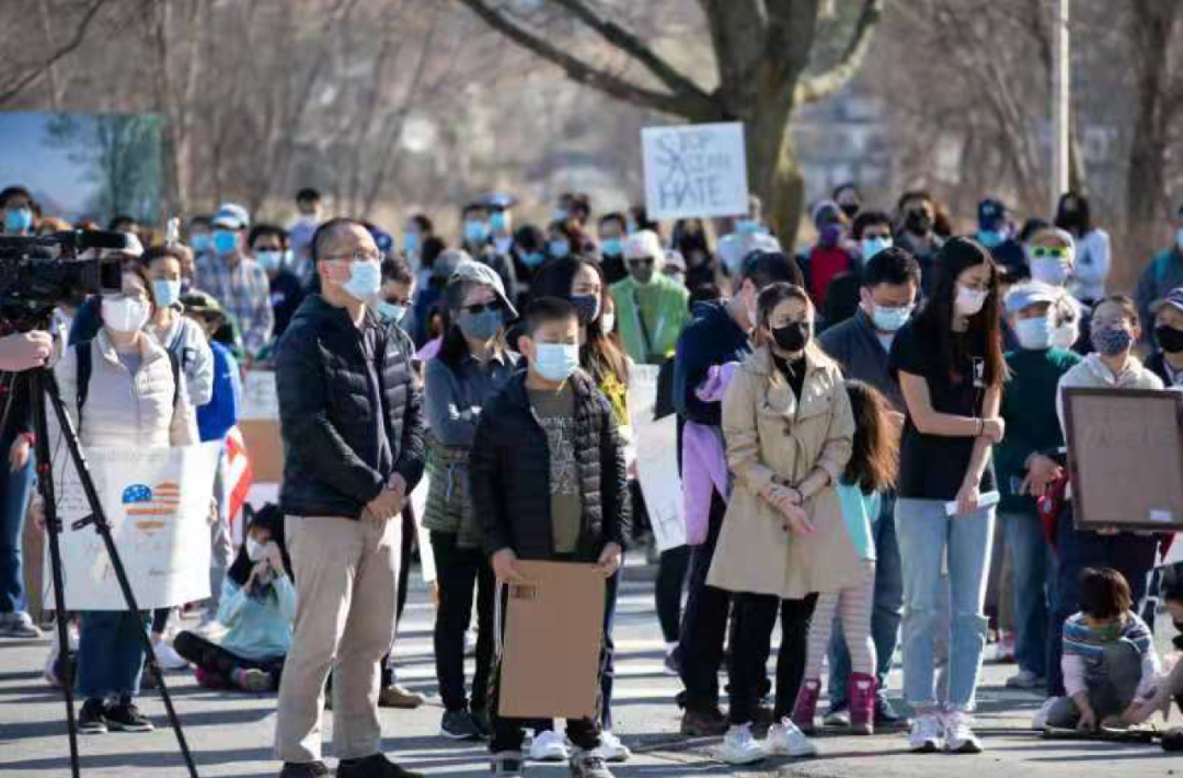 3月21日,数百名亚裔人士在美国首都华盛顿特区麦迪逊广场举行集会,抗议近期在美国多地接连发生的针对亚裔人士的暴力活动,呼吁美国社会停止对亚裔的仇恨,集会人士通过致辞表达亚裔人士对美国社会的贡献,表示“仇恨亚裔”才是严重的社会病毒。