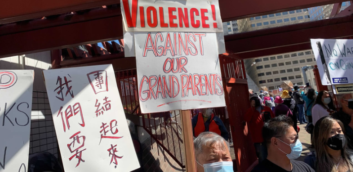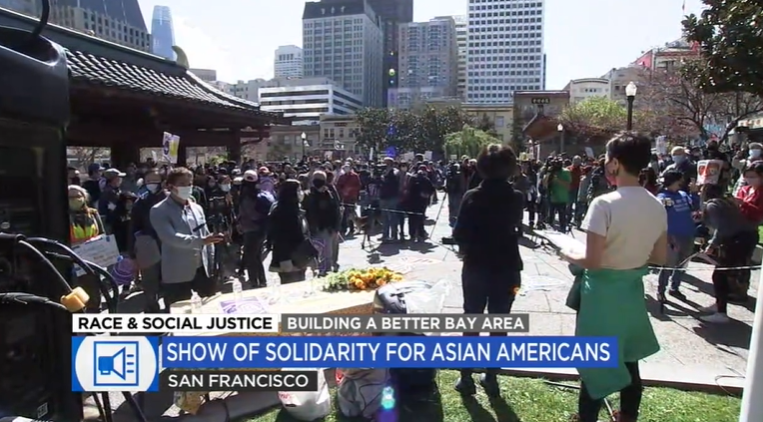 3月20日,20多个亚裔社区组织联合在华埠花园角举办「湾区到亚特兰大—我们一直与您同在」的千人集会,要求社会广泛正视亚裔遭受歧视、近期屡屡遭受种族仇恨犯罪的现状。