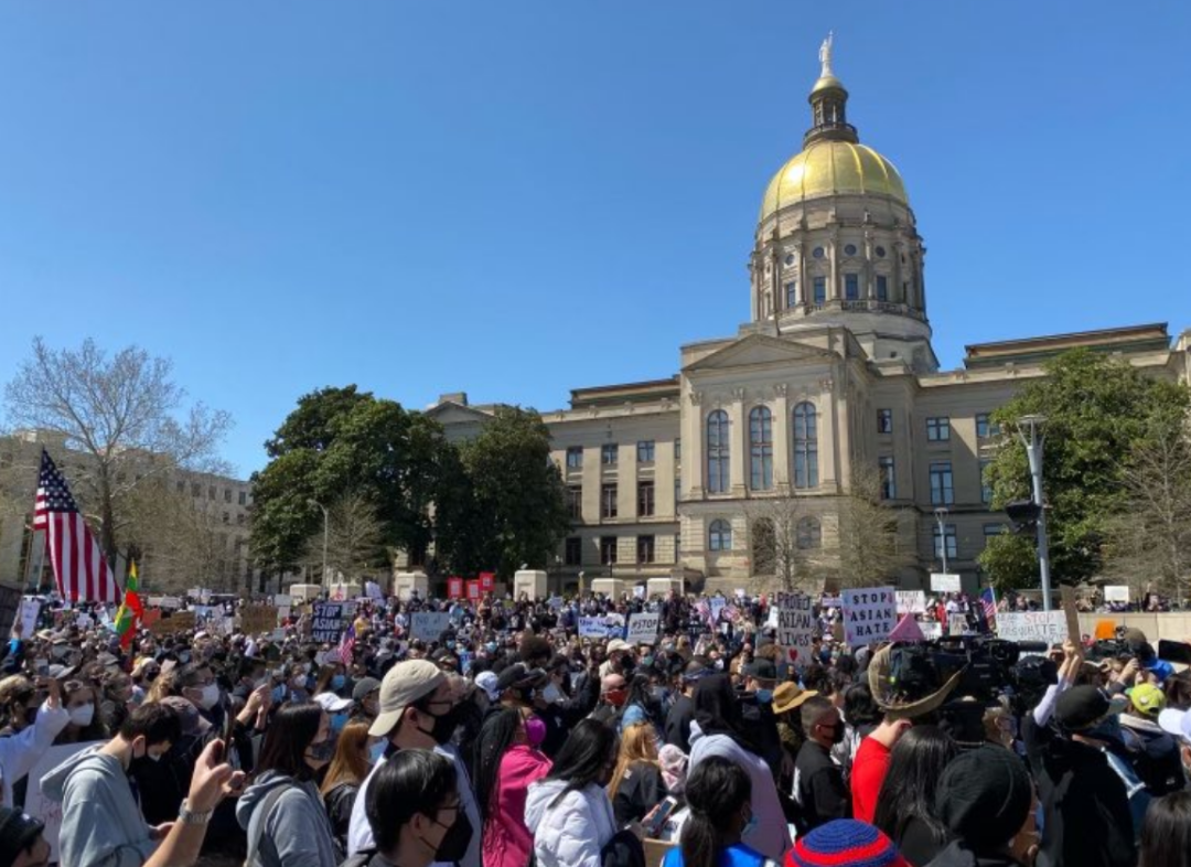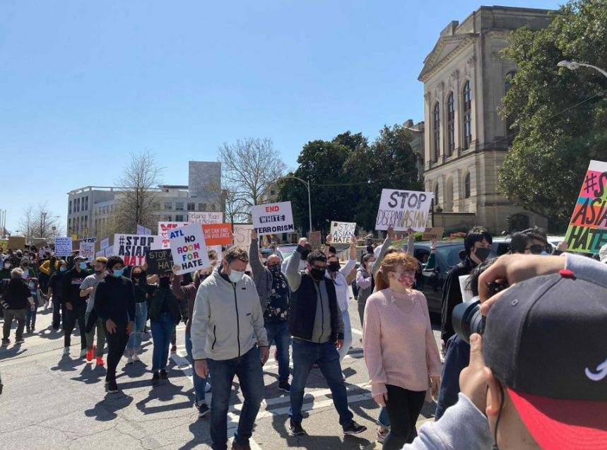 3月20日,亚特兰大市有数百人从伍德拉夫公园游行至自由广场,抗议人群手持标语,呐喊诸如“仇恨才是病毒”等口号。抗议人群表示,集会是为了向立法者施压,以制止美国境内频频发生的针对亚裔的暴力行为。