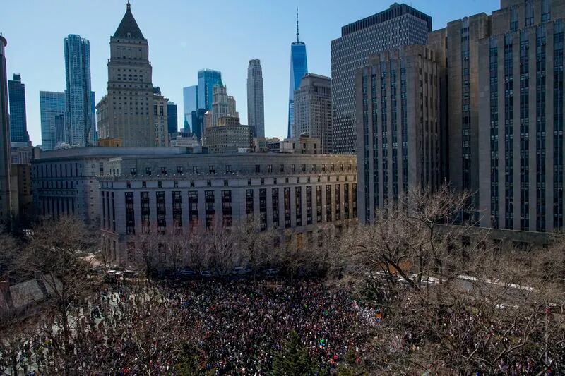 下午一点亚裔社区在曼哈顿唐人街哥伦布公园举办「反仇恨大游行」活动,数千名各族裔民众涌入公园,谴责种族歧视和仇恨犯罪,齐声疾呼「我们忍无可忍」。