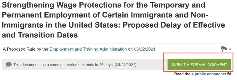 大家可以前往联邦公报进行公开评论,评论期将于4月21日截止。注意,是对延期执行这个建议评论,不是对最低工资调整进行评论。