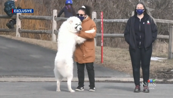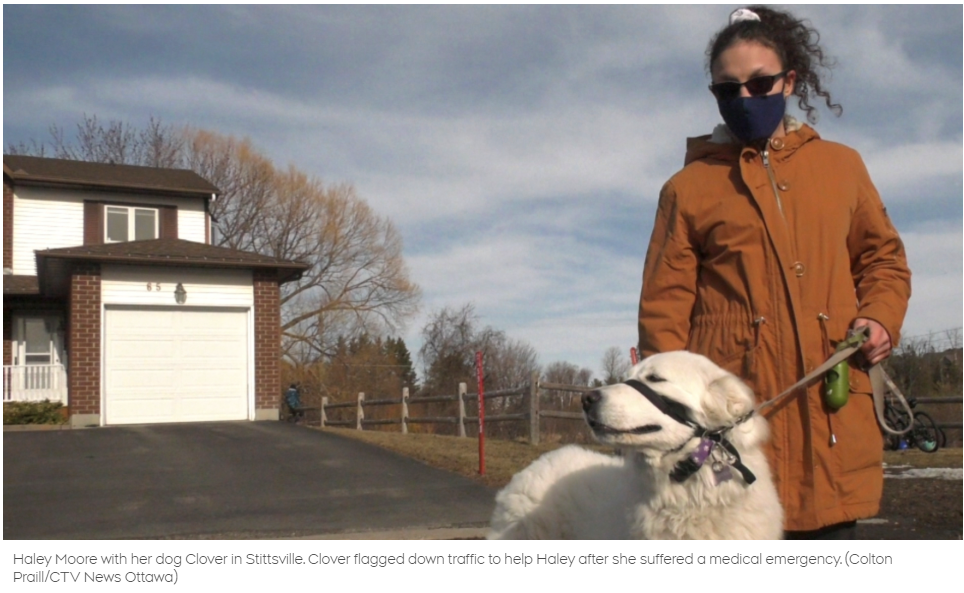 感动!加拿大妹子遛狗时突然倒地,狗狗冲到马路拦车求...