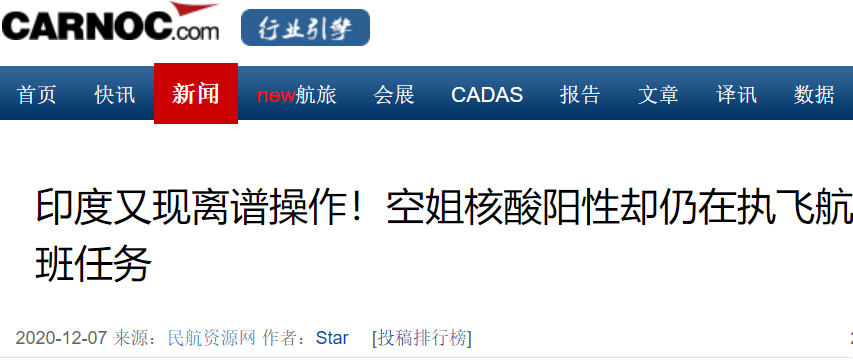 甚至,有一名44岁资深印度航空的空姐,还被爆出在起飞前50分钟查出新冠阳性,却仍然上了飞机进行执飞。