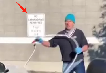 陈女士摇下车窗善意提醒,并告诉他这里是不能洗车的,可男子仍然不予理睬,就是不挪地儿。