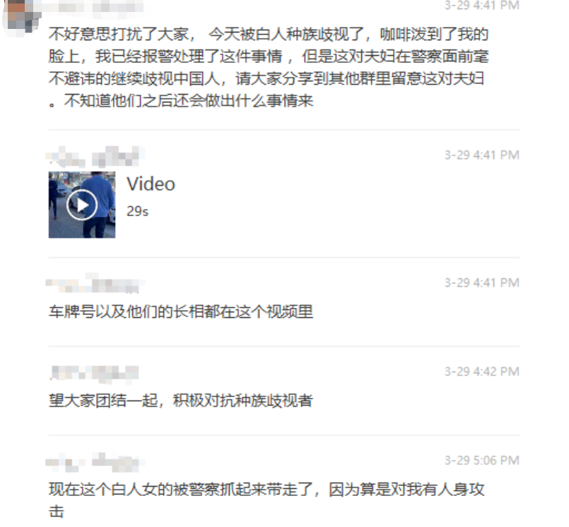 两人泼咖啡的时候嘴里咒骂"Fxxk u Chinese",更过分的是,在离开之前,白人妻子还将杯子里剩余的咖啡往华裔女店员脸上泼。