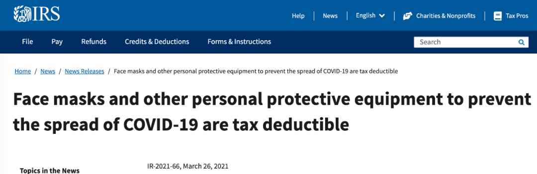 IRS最新声明:疫情期间防疫用品可抵税