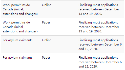 如果申请者是在加拿大境内提交的,无论通过线上或纸质的申请,IRCC都已经处理到去年12月中旬的案件。
