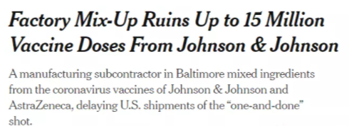 Emergent BioSolutions工厂也在为阿斯利康公司生产疫苗,显然是在一批J&J的疫苗中使用了英国公司疫苗的成分。