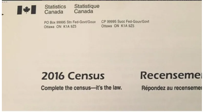 这也就意味着所有加拿大人包括留学在内,届时都会在信箱里收到一封人口普查问卷,大概长这样↓↓↓(下图为2016年版)
