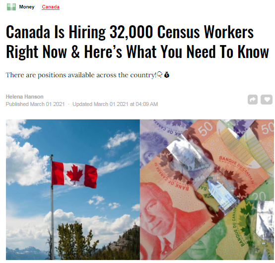 最近关注求职方面信息的朋友可能已经注意到,从3月开始,加拿大统计局就开始为今年的人口调查做准备工作,招聘32,000名人口普查员工,以帮助顺利收集问卷和数据收集。