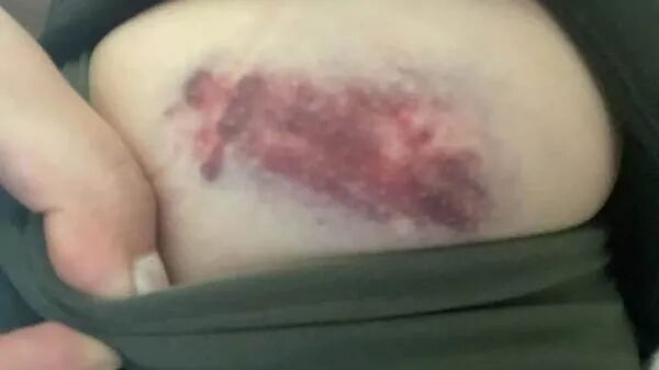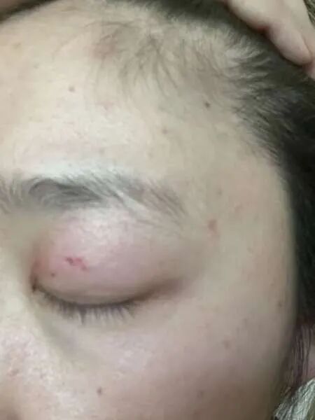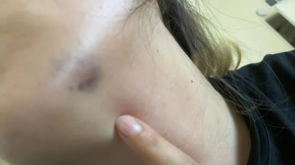 刘太太面部挨了3、4拳,导致左眼充血,身体多处瘀伤。