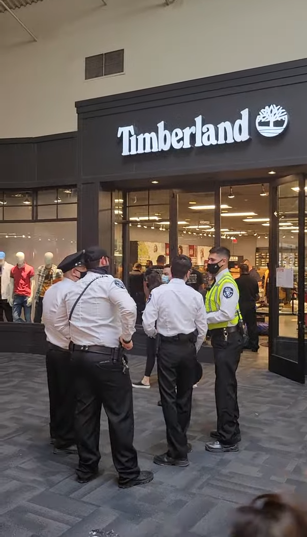 仇恨袭击发生的时间正是周日购物人群较多的时段,Timberland店员发现门口有异常便出来了3位女员工,看到单女士4岁的女儿被吓到大哭,店员拿来糖果安抚孩子。