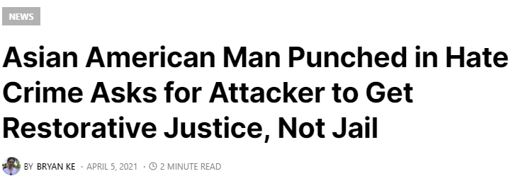 美西时间4月7日,据nextshark报道,一名波特兰男子于去年袭击一名华裔男子,该名嫌疑人承认了偏见罪。但是,这名华裔男子表示原谅嫌疑人,并向美国法庭要求施暴者和被害者和解。