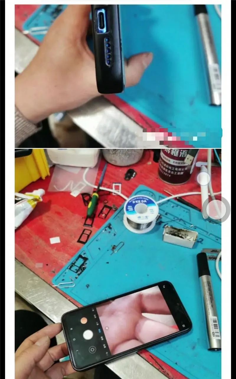 根据这位微博网友的介绍,经过改装,针孔摄像头被藏于手机扬声器位置,连接的是前置摄像头协议接口,拍摄时在摄像机界面切换摄像头,就可以切到针孔摄像头,进行拍摄。此外,还可以连接上专门的 App,使得锁屏息屏时也能偷拍。