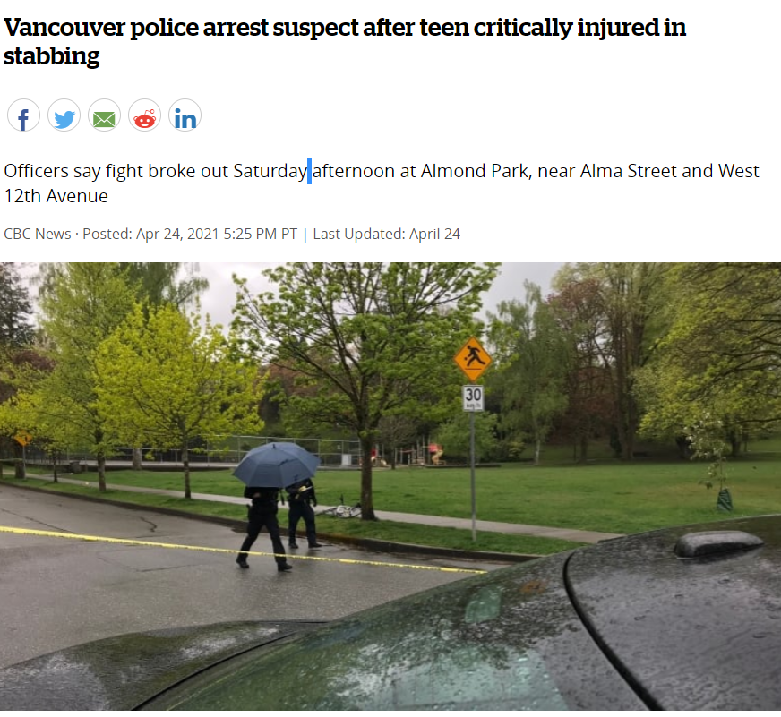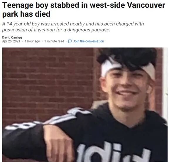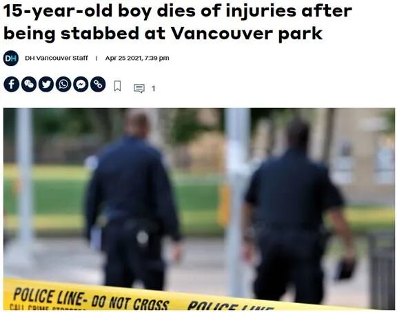 警惕! 15岁男孩在温西公园被乱刀捅死 命断豪宅区! 家长小心!
