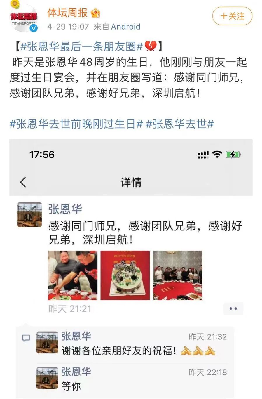 前一天是张恩华48周岁生日 最后一条朋友圈让人痛心 ↓↓↓