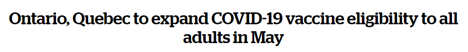 今天,安省宣布在5月份扩大接种COVID-19疫苗的规模。所有成年人都可以在5月底之前预约接种第一剂。