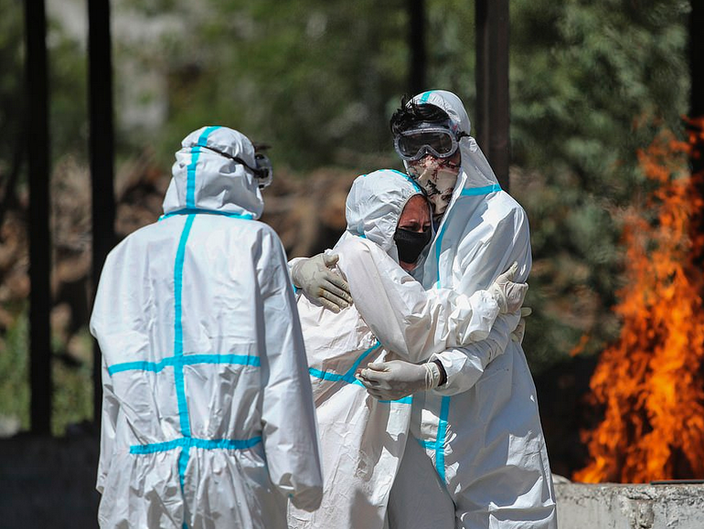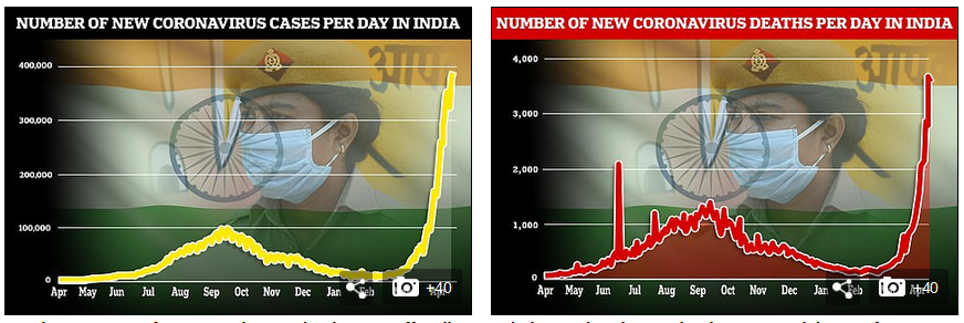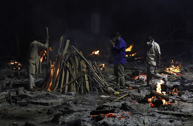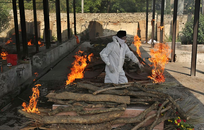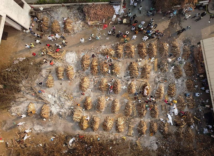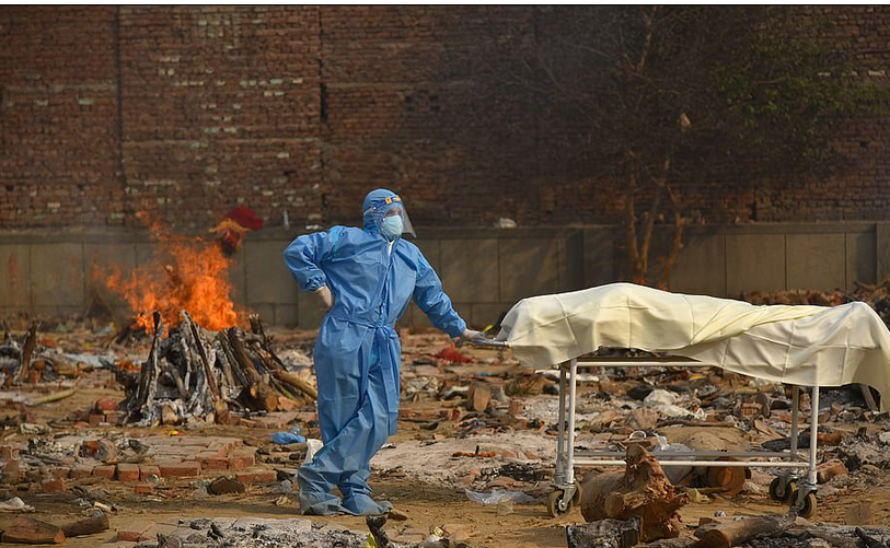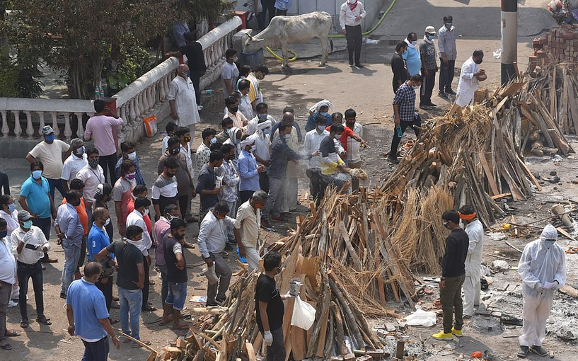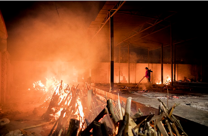 如今,印度已处于全球新冠的危机中心,德里和孟买等地正昼夜不停地焚烧尸体,医院得在武装警卫的保护下供应氧气。