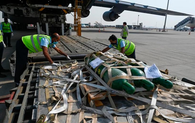 尽管目前来自英国和美国的紧急医疗设备已抵达印度,其中包括一架今日刚刚抵达的、搭载400个氧气瓶的美国空军货机,但印度各地仍然严重缺乏氧气、药品和床位。
