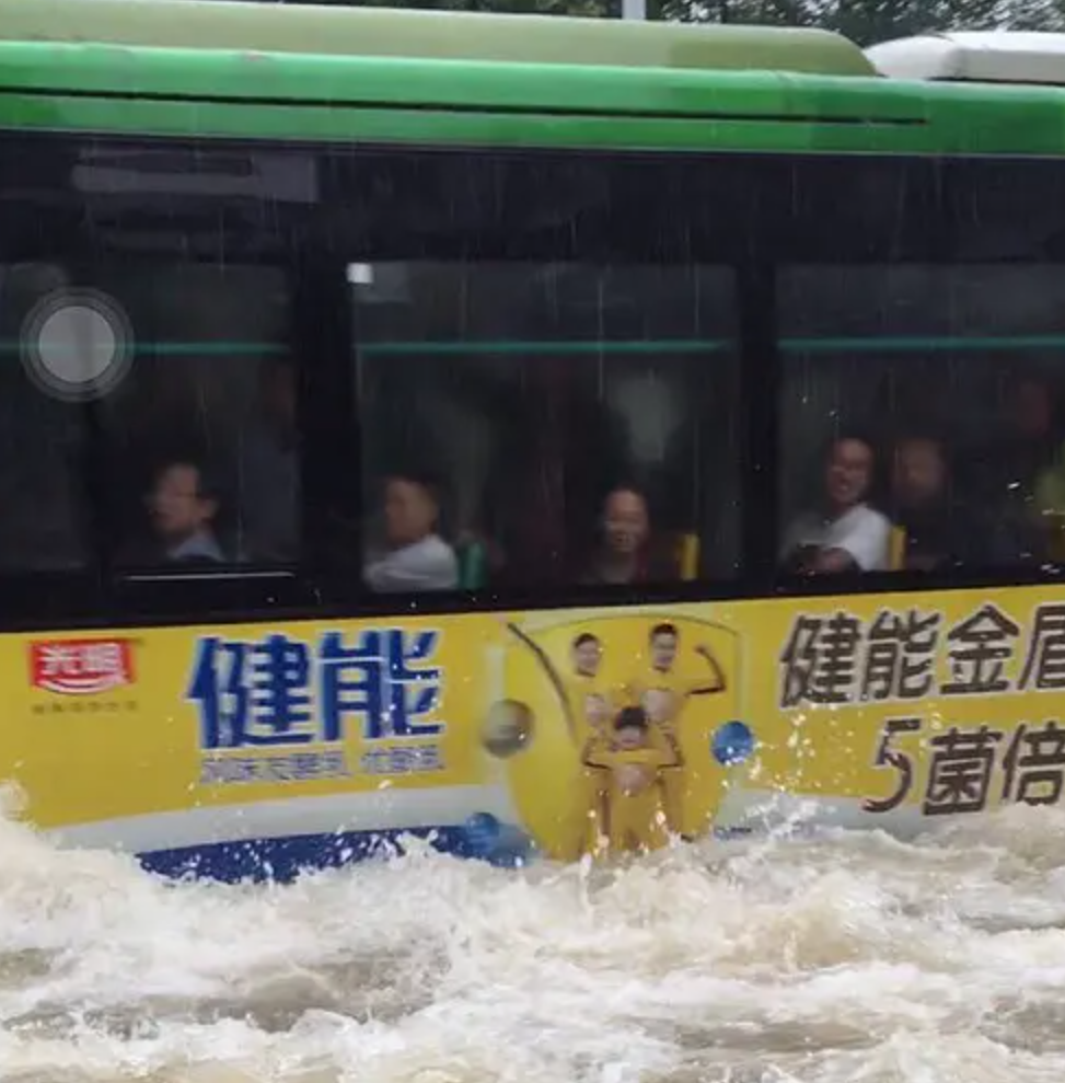 在武汉,不会开飞机的船长都不好意思说自己是公交司机。 每到暴雨的时候,就算积水在车厢里都淹到座位,公交车还在开,比潜水艇更可靠。  这就像是在陆地上玩激流勇进,而司机师傅们也懂以人为本,还会默契的提供那种脚不沾水即可无缝换乘的服务。  从一些涉水时画面里可以看出,公交上的人都玩的挺开心的 乘客们自然是对司机高超的驾驶技巧充满信心,他们曾有一套自己的乘车方式。 “当年专门去体验521,第一辆车我根本没上去,司机完全不停车,大家都很自觉的跟着车跑,找准时机跳上去。” “另外一次在民族大道光谷广场那边,我人还没上去,包被挤上去了。” 以前没禁止饮食的时候,大把姑娘们穿着细高跟站着吃汤粉,纹丝不动 武汉人民有多彪悍,从公交乘客的口中就可以发现一些线索: “坐208去沌口,司机为了超车把车开到了花坛上,整个车身倾斜45度沿着花坛滑行,终于超车成功还没有翻车后,车上的乘客自发给司机拍掌喝彩。” 几乎每条公交线路都留下了自己的历史痕迹,但最狠的还是被取缔前的夺命小巴,比如青山区的青青快巴,在当地又被称为青青火箭。 路口只要有它在附近,灯变绿都不敢走。 当地朋友说,以前武汉的公交是承包出去的,所以越快准狠的司机越赚钱,但和其他城市相比,整体的公交事故率并不高。 到现在早已经限速,两站之间也越来越近,飙不起来了。 管理最严格的时候车上必须放杯水,保证行驶过程中水杯不能溅出20%。