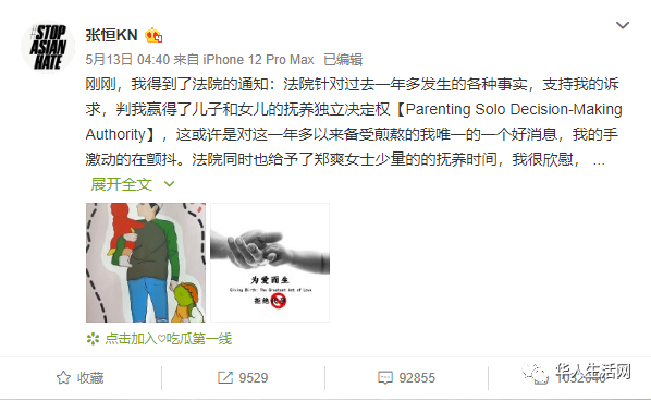 从今年一月张恒在微博上公开他和郑爽两人在美国代孕生子的事件后,关于孩子日后的抚养权问题就在美国展开了官司。