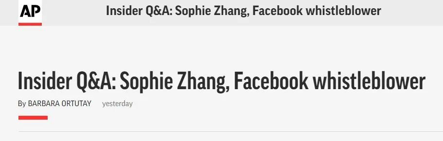 在Facebook上班的最后一天,因不满公司对某些国家利用该社媒平台散布假信息操纵舆论而袖手不管,她在公司内部论坛上发布了长达近7000字的备忘录,陈列她所发现的种种不妥之处,但石沉大海。