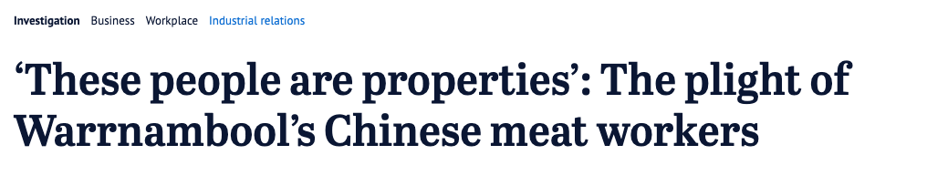 “这些人是财产:Warrnambool肉厂中国工人的困境”