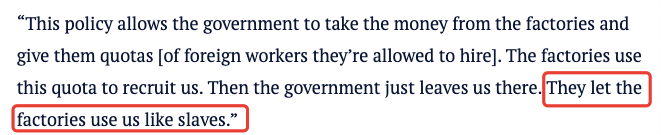 所以,他们明明知道肉厂工作如此艰辛,也要出国。但是他们没想到的是: