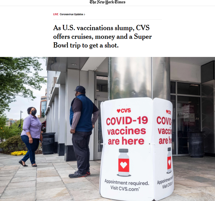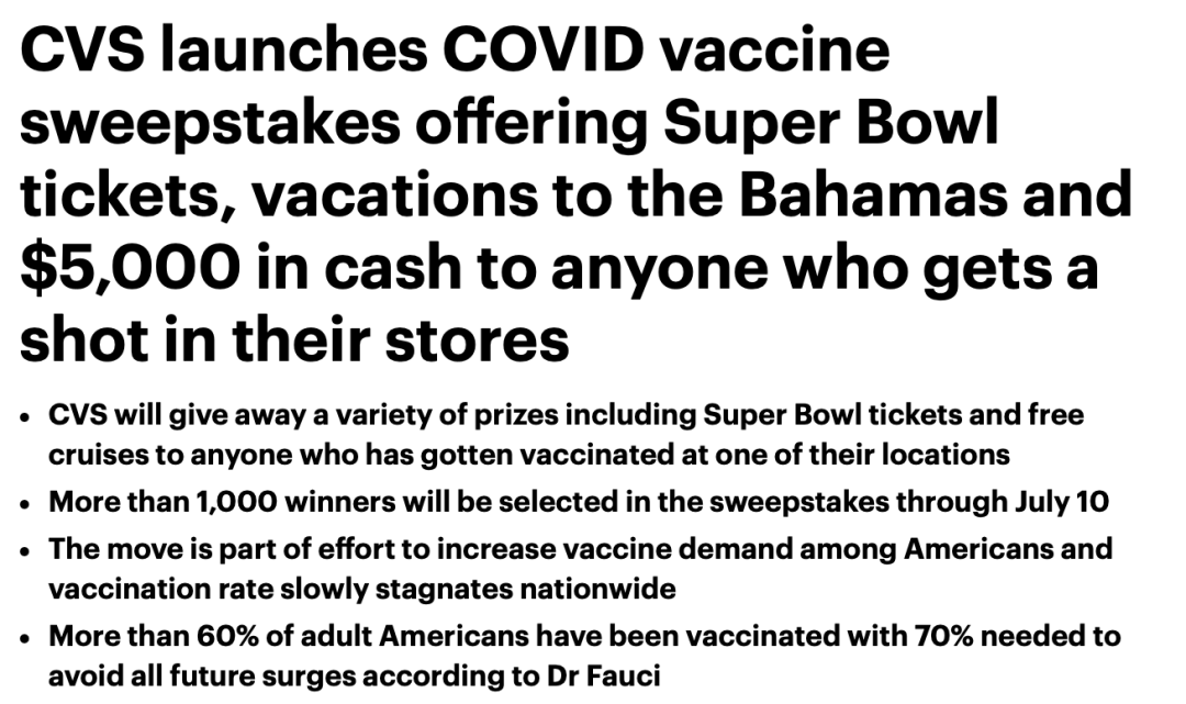 CVS打疫苗赢大奖!5000美金、7日邮轮之旅、超级碗VIP票、免...
