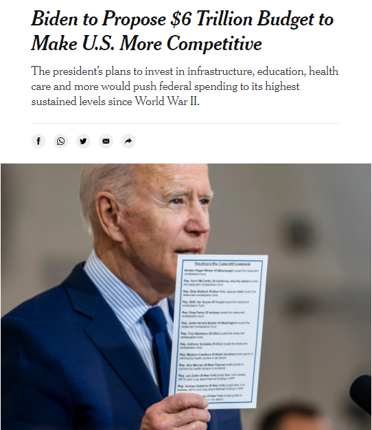 加税增收!拜登推「6万亿预算案」超过二战水平!预计将...