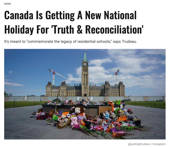 很多人以为是因为原住民儿童遗体被发现之后真相与和解委员会才给政府压力要求成立这样的一个节日,实际上关于成立这个节日的提案在2019年就被提出了,只不过在近期才被通过。