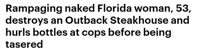 美53岁女子[不穿衣服]“大闹”牛排店!狂扔酒瓶搞破坏 整...