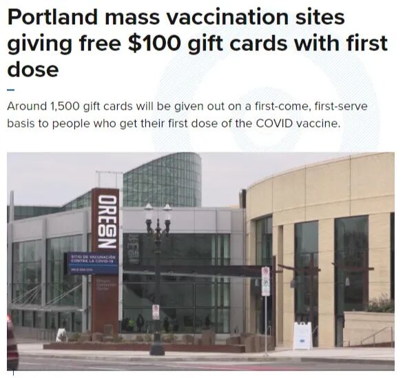 打第一针疫苗「送100美元礼品卡」先到先得,送完即止!