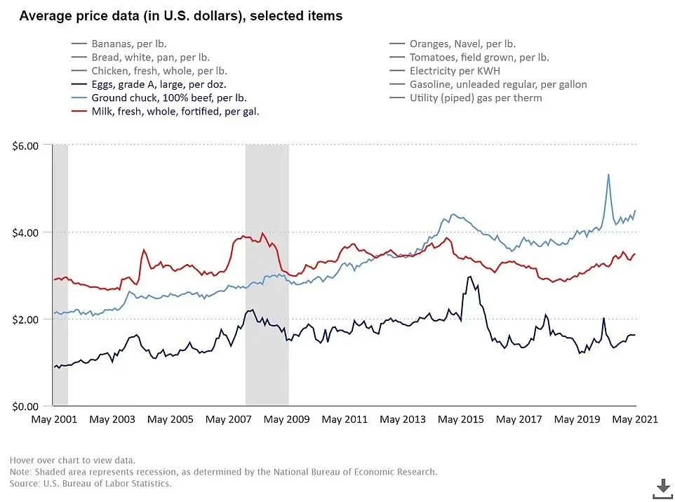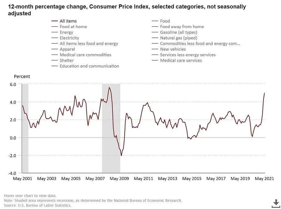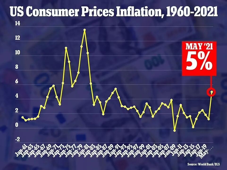 涨涨涨「美国通胀飙升5%」从面包到二手车全面涨价!达30...