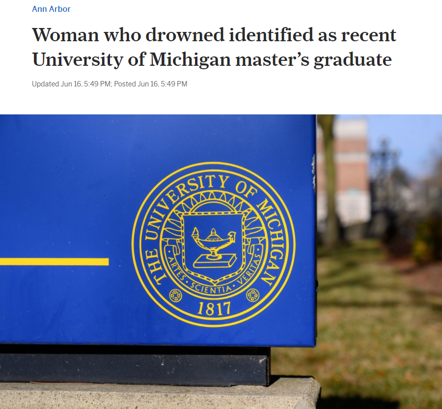 当地时间16日,美国密歇根州沃什特诺县警长办公室确认,日前在银湖Silver Lake发现的女性遗体,为密歇根大学安娜堡分校的华人留学生——王菊涵(Juhan Wang,音译)。