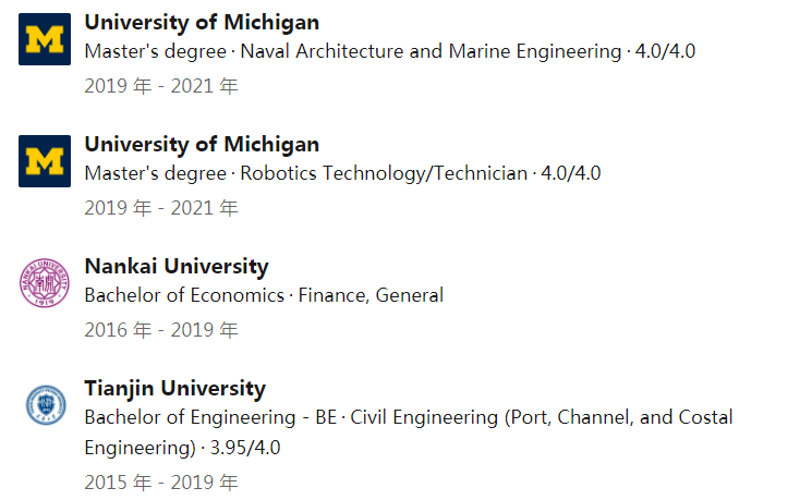 据了解,王菊涵今年春季刚刚从密歇根大学安娜堡分校毕业,并成功拿下了造船与机器人双硕士学位。
