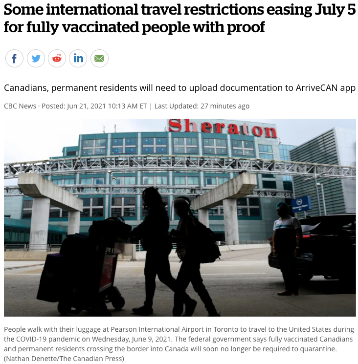 突发!加拿大宣布「解封边境第1阶段」7月5日生效!完全接种免隔离,有2个条件!APP申报入境,违者最高罚$750,000!
