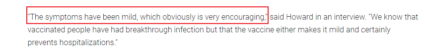 与此同时,世界卫生组织WHO技术负责人 Maria VanKerkhove也表示,在完整接种疫苗的情况下,现有的疫苗能够有效预防新冠Delta导致的重症和死亡。