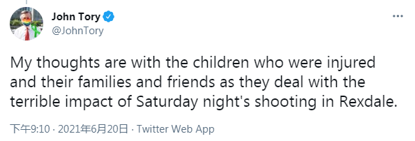 多伦多市长John Tory严重谴责枪击事件,称这居然发生在一个孩子的生日派对上,实在是“令人震惊和残暴的枪支暴力行为”。