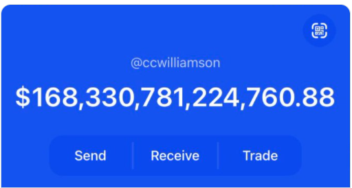 不过平台似乎还没来得及修复这个BUG,现在Chris的“账户余额”还在蹭蹭上涨,现在都快有1.7万亿美元了呢